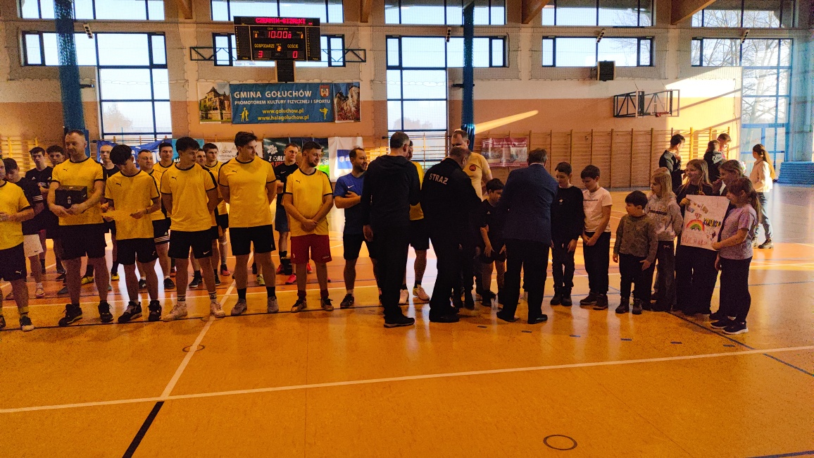 Dnia 18 stycznia 2026 roku w Hali Widowiskowo-Sportowej w Gołuchowie odbył się organizowany przez Zarząd Oddziału Powiatowego Związku OSP RP w Pleszewie, Zarząd Oddziału Gminnego Związku OSP RP w Gołuchowie oraz samorząd gminy Gołuchów, Powiatowy Turniej Halowej Piłki Nożnej drużyn OSP powiatu pleszewskiego. W turnieju udział wzięły drużyny: OSP Czermin, OGm. Gizałki, OSP Kowalew, OSP Kuchary i ubiegłoroczny zwycięzca turnieju OSP Gołuchów z gminy Gołuchów. Zwycięzcą turnieju została drużyna OSP Kuchary, drugie miejsce zajęła drużyna z Czermina, na trzecim miejscu uplasowała się drużyna z Gołuchowa, czwarte zajęła drużyna z OGm. Gizałki a piąte z OSP Kowalew. Nagrody, którymi były puchar, piłki i dyplomy wręczali: Prezes Zarządu Oddziału Gminnego Związku OSP RP w Gołuchowie i jednocześnie wicestarosta pleszewski druh Marek Zdunek, wiceprezes Zarządu Oddziału Powiatowego Związku OSP RP w Pleszewie druh Waldemar Melerowicz oraz zastępca Komendanta Powiatowego PSP w Pleszewie st. bryg. Waldemar Barański i członek Zarządu Oddziału Powiatowego Związku OSP RP w Pleszewie druh Leszek Zdunek.