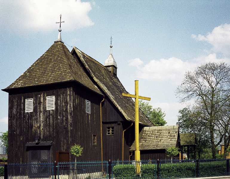 W centrum wsi znajduje się modrzewiowy, kryty gontem, jednonawowy kościół p.w. św. Bartłomieja, zbudowany w 1686 r. Wewnątrz kościoła znajdują się trzy ołtarze. W głównym, umieszczono obraz adoracji Matki Boskiej przez świętych Wojciecha i Stanisława z 1635 r., a poniżej malowaną predellę z postaciami aniołów w strojach polskich. Po prawej stronie prezbiterium znajduje się relikwiarz z popiersiem św. Mikołaja, wykonany w XVI w. oraz barokowa chrzcielnica w kształcie drzewa rajskiego. W lewym ołtarzu bocznym powieszono osiemnastowieczną kopię rzymskiego obrazu „Matki Boskiej Większej”. Na ścianach nawy umieszczono ceramiczną „Drogę Krzyżową”.