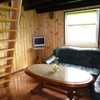 Komfortowy, samodzielny domek z pełnym wyposażeniem. Dół: salon z TV, kuchnią i łazienką. Na górze osobna sypialnia z łóżkiem małżeńskim, antresola z 2-osobową wersalką oraz pojedyncze łóżko...