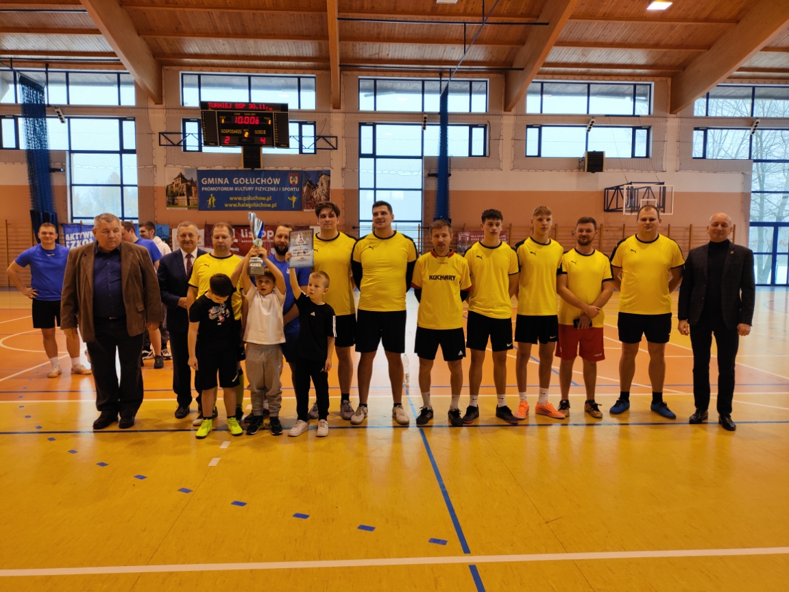 Dnia 30 listopada 2025 roku w Hali Sportowo-Widowiskowej w Gołuchowie odbył się X Gminny Turniej Halowej Piłki Nożnej drużyn OSP. W turnieju udział wzięły 4 drużyny reprezentujące następujące OSP: Bogusław-Bogusławice, Karsy, Krzywosądów i Kuchary. Zwycięzcą turnieju została drużyna OSP z Kuchar, kolejne miejsca zajęły drużyny OSP: Krzywosądów, Karsy i Bogusław-Bogusławice. Nagrody, którymi były puchary i dyplomy wręczali: Wójt Gminy Gołuchów Pan Tomasz Pawlak, Prezes Zarządu Oddziału Gminnego Związku OSP RP w Gołuchowie druh Marek Zdunek oraz Wiceprezes Zarządu Oddziału Gminnego Związku OSP RP w Gołuchowie druh Waldemar Melerowicz. Drużyna z Kuchar zakwalifikowała się do Turnieju Powiatowego, który odbędzie się również w tej hali dnia 18 stycznia 2026 roku.